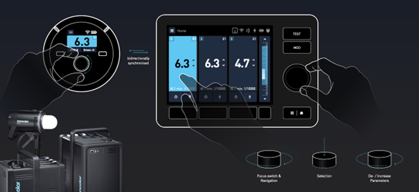 A Satos és a Pulso L felhasználói felületének sikere a broncolor és a HMI Project GmbH szoros együttműködésének eredménye. A HMI Project egy többszörösen díjnyertes stúdió, amely az ipari alkalmazások ergonomikus szoftverfelületeinek tervezésére specializálódott. A tapintásra optimalizált felhasználói megoldások fejlesztésében szerzett szakértelmük döntő szerepet játszott a kiemelkedő eredmények elérésében.